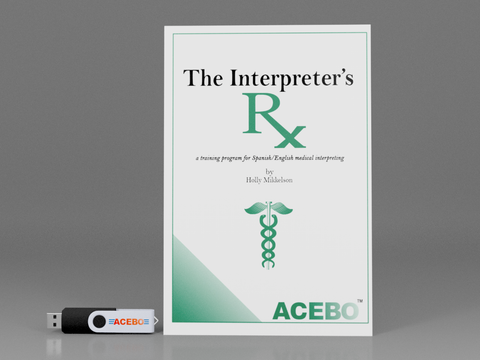 The Interpreter's Rx teaches Spanish-English interpreting in a medical context. The Rx consists of a 262-page book, and a set of three audio CDs (now included in a USB Flash Drive). The Rx includes training in Sight Translation, Consecutive Interpretation, and Simultaneous Interpretation. The Rx also includes an extensive reference section with specialized bidirectional glossaries and anatomical illustrations. The Interpreter's Rx is ideal for those studying for medical interpreting certification exams.